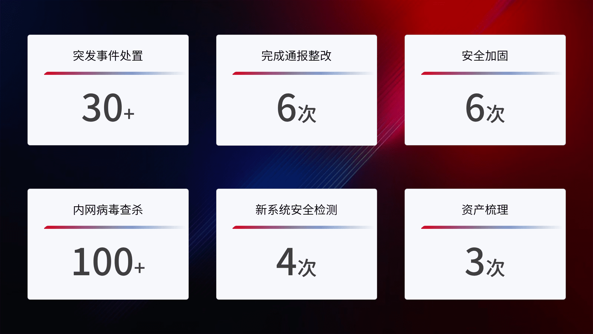 根据客户需求定制整改方案,,,强化应急演练,,,提升网络安全事件应对能力。。。。